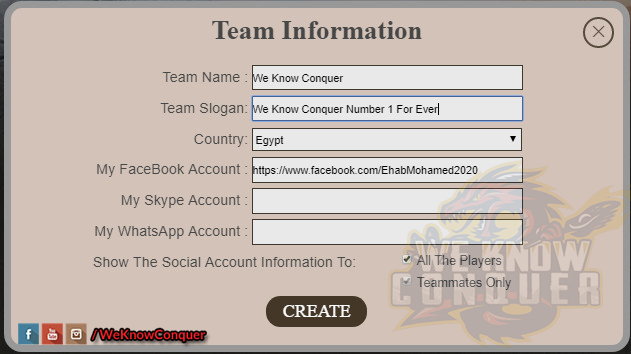 بعد كده الكلمة هتتغير من Create Team الى My Team لو عايز تشوف مين معاك فى التيم وكلام ده كله