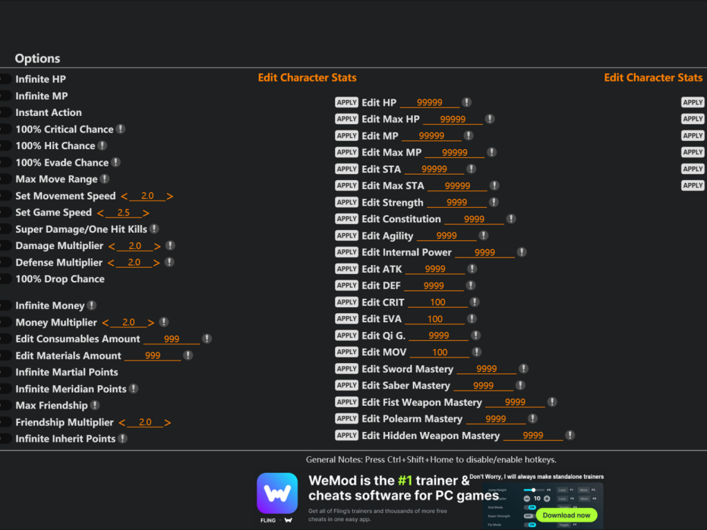 Wandering Sword Trainer 49 Options · Game Version: v1.20-v1.24.*+