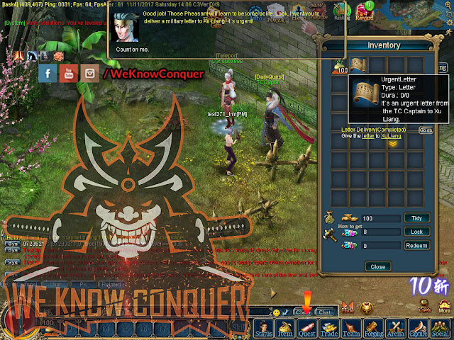 كويست Novice Questsالكويست ده بيسهل انك تبقى ليفل 100 وتاخد الاصطف بسهولة وسرعة تابع الصور الموضوع بسيط خالصيارب يكون الشرح عجبكم متنساش متابعتنا على مجموعة جروبات We Know Conquer على مواقع التواصل الاجتماعى