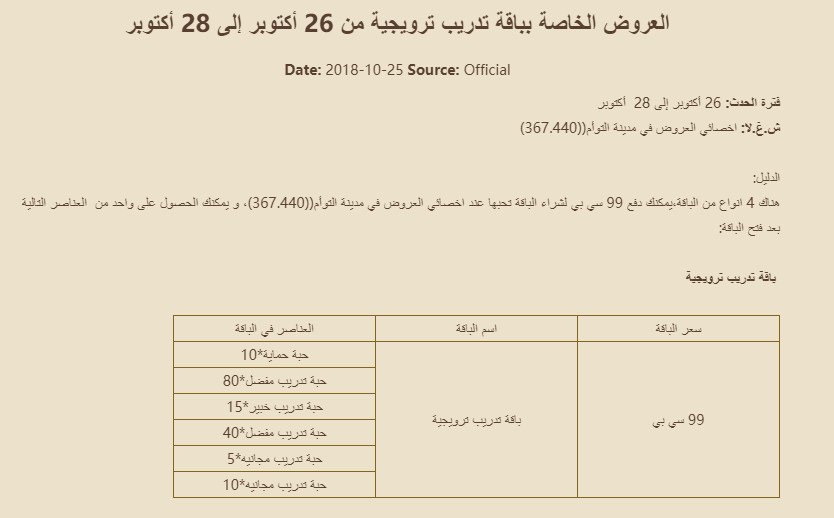 2.سوف سنتهى صلاحية هذه الباقة في الساعة 23:59 اليوم30 أكتوبر.