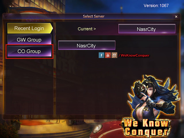 بعد كدا بتختار السيرفر بتاعك الموجود هما سيرفرات مش كتيرة لكن قريب هيتم اضافة كل سيرفرات لعبة كونكر