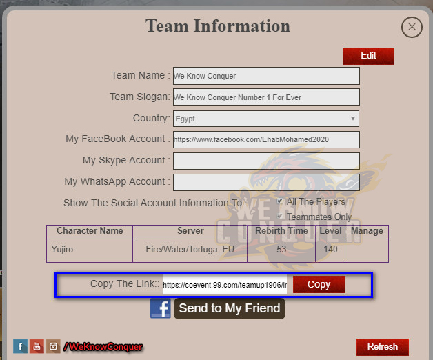 وده رابط التيم الخاص بيا : https://coevent.99.com/teamup1906/index.php?jointeam=1&teamid=486