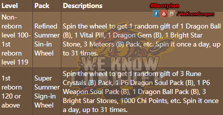 عندما تكون في المستوى 100 أو أعلى ، يمكنك تسجيل الدخول للمطالبة بحزمة تسجيل دخول صيفي من صندوق بريدك داخل اللعبة. افتح هذه الحزمة للحصول على 1 30 يومًا من الملابس المباركة Legend of Heroes (B) لمدة 30 يومًا وعجلة تسجيل الدخول الصيفية.