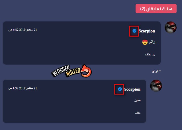 تعتبر التعليقــات مهمة في بلوجر من اجل تبادل نقاشات و طرح تسائلات فيجب بطبعة حال ان تكون بتصميم بسيط لكن إضافة اليوم خاصة ب إشارة التحقق تكون بجانب المشرف مدونة تميزه عن باقي مستخدمين في صندوق التعليقات لكي يعرف متابعين رد المشرف على تعليقهم