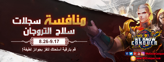 خلال فترة من 26 أغسطس إلى 17 سبتمبر، عندما تقوم بترقية نفس سلاحك بمقدار 1 نجمة، يمكنك الحصول على الجوائز المقابلة، هناك جوائز لترقية الأسلحة التسعة كلها.هنا لتفاصيل الحدثشرح الايفنت بالتفصيلشرح ايفنت TROJAN WEAPON ARCHIVE COMPETITION - والجوائز استونات وحجارة برفيكشن و SPIRIT STONE والمزيد - كونكر اون لاين