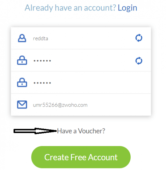 - املأ النموذج الصغير عن طريق إدخال اسم مستخدم وكلمة مرور وعنوان بريد إلكتروني ، ثم انقر فوق “هل لديك قسيمة؟” زر.