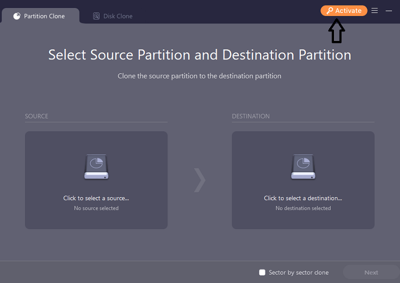 يتيح لك شبيه القسم اختيار أقسام المصدر والوجهة بسرعة. هذا كل ما عليك فعله قبل أن يقوم التطبيق بعمله. يتم نسخ قسم المصدر ، ويتم نقل النسخة إلى قسم الوجهة. إذا كنت تريد ، يمكنك اختيار استنساخ القطاعات حسب القطاع.