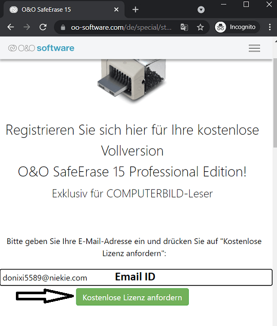 ستتلقى رسالة بريد إلكتروني ثانية من O&O Software. تحتوي هذه الرسالة الإلكترونية على كود l icense ورابط لتنزيل برنامج التثبيت (ألماني).