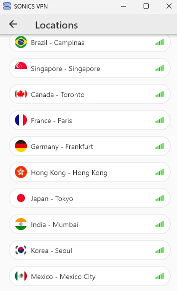 SONICS VPN جذابة على الفور لأنه من السهل الاتصال. أيضًا ، يوفر إصدارًا تجريبيًا مميزًا لمدة 7 أيام للمستخدمين الجدد.