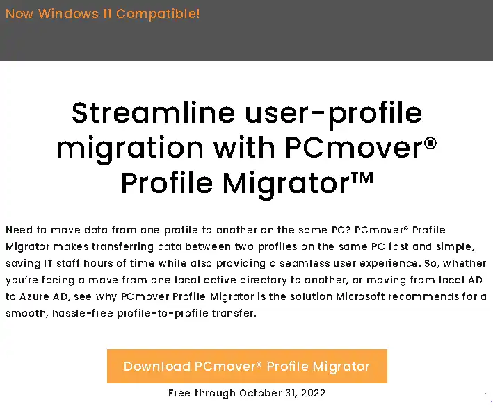 تقدم Laplink ما قيمته 29.95 دولارًا من PCmover Profile Migrator مجانًا لجميع المستخدمين. سيكون هذا العرض المجاني متاحًا حتى 30 أبريل 2023.