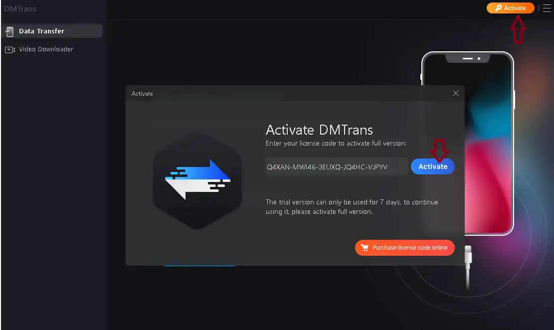 قم بتثبيت التطبيق وتشغيله ، في النافذة الرئيسية ، انقر فوق “تنشيط” وأدخل رمز الترخيص أدناه.