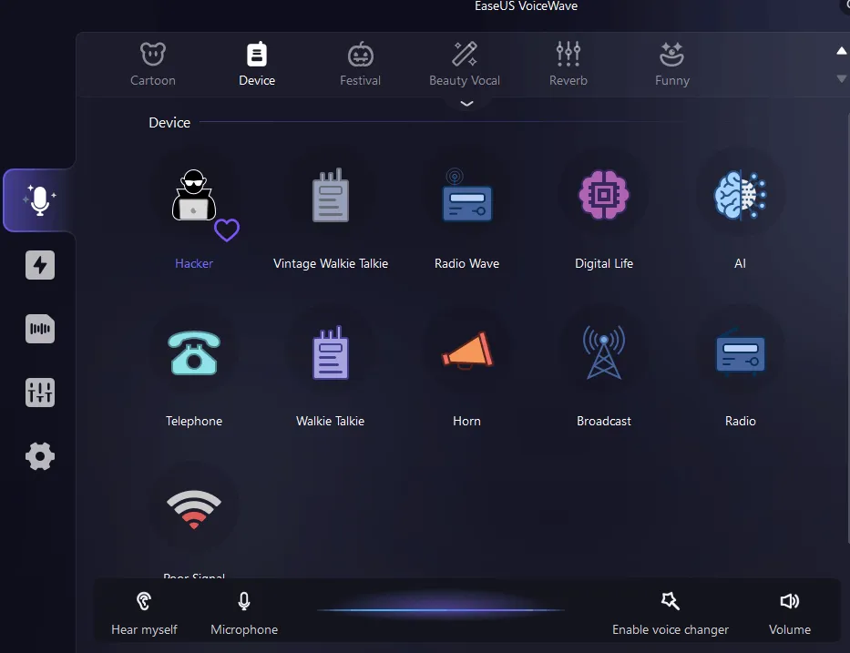 إذا كنت تبحث عن مغير صوت ، فابحث عن EaseUS VoiceWave. يتيح لك برنامج Windows هذا تغيير صوتك إلى صوت يشبه الروبوت أو الوحش أو حتى أحد المشاهير.