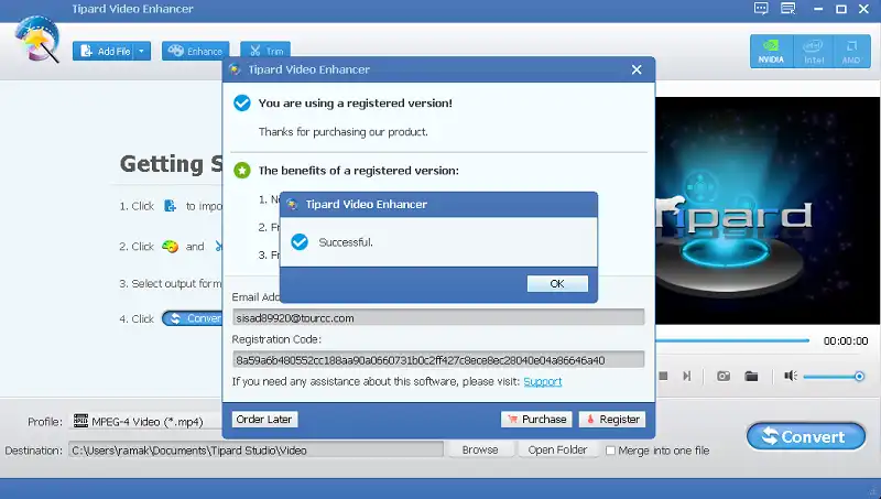 سوف تتلقى رسالة بريد إلكتروني من Tipard ( registration@tipard.com ) في صندوق الوارد الخاص بك مع رمز الترخيص أو رمز التسجيل.