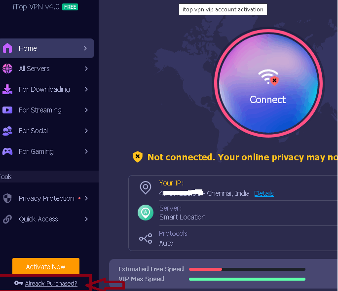 مفتاح ترخيص برنامج iTop VPN 5.0:اشتراك VIP مجاني – لتعديل البنج وتغير IP الانترنت