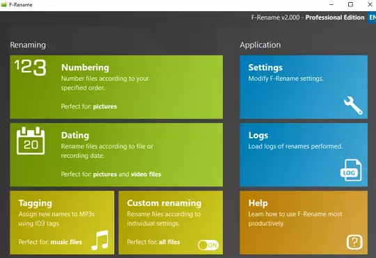 ASCOMP F-Rename Pro هو برنامج Windows مباشر وسهل الاستخدام يسمح لك بإعادة تسمية الملفات على دفعات بسرعة ودون عناء.