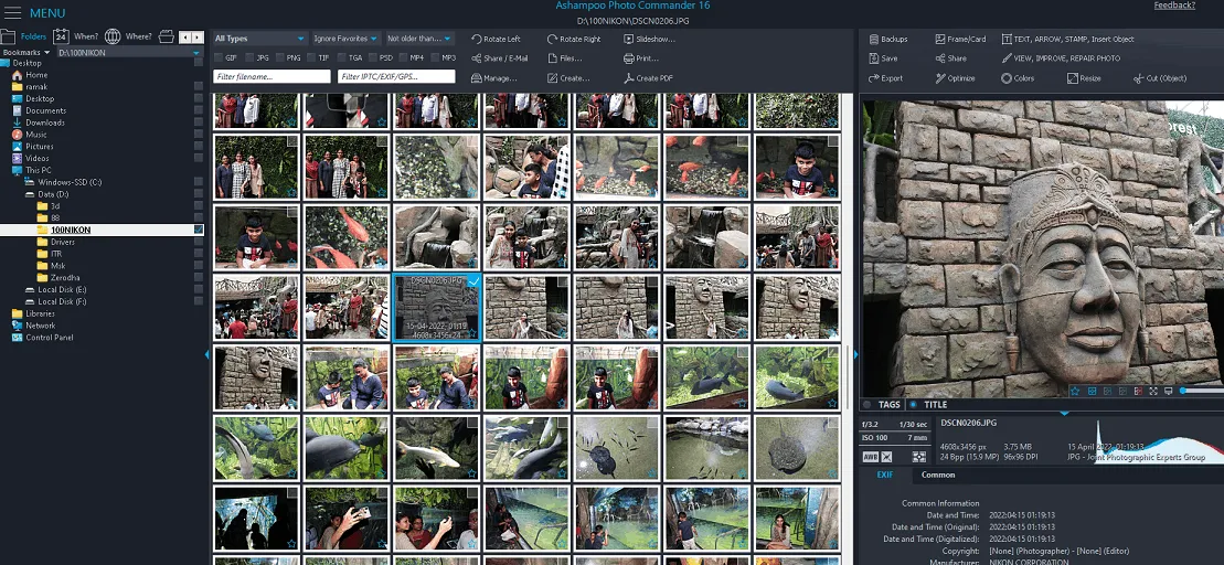 يقوم Ashampoo Photo Commander بأكثر من مجرد تنظيم الصور على جهاز الكمبيوتر الخاص بك. باستخدام هذه الأداة، يمكنك تغيير حجم الصورة أو اسمها. يمكنك تحرير صورك وإنشاء عروض شرائح أو صور مجمعة أو ألبومات باستخدامها.