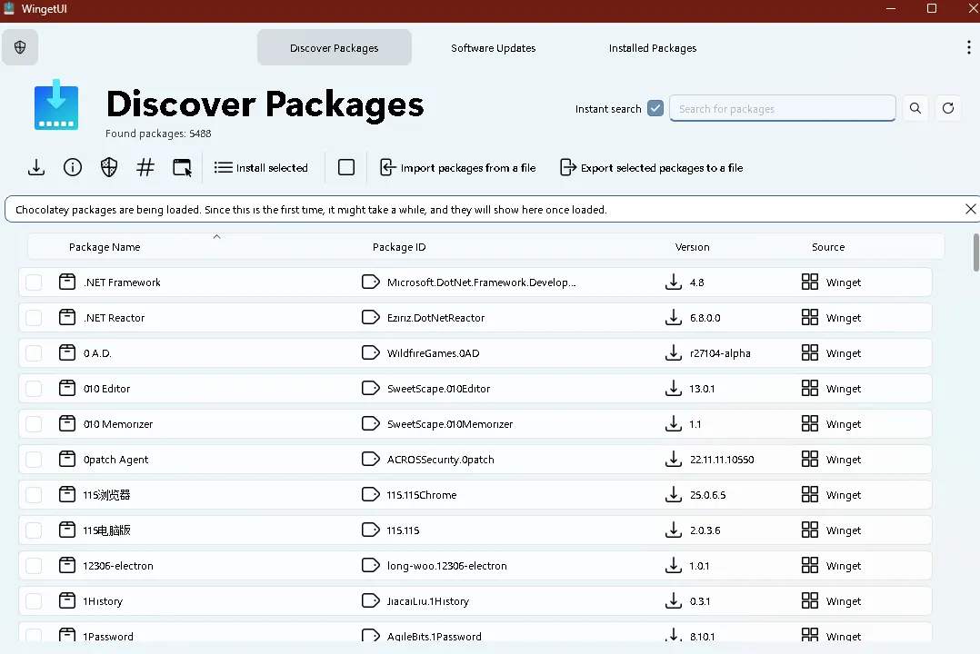 - وهو يدعم تثبيت الحزم وتحديثها وإزالتها من مديري الحزم Winget وScoop وChocolatey.
